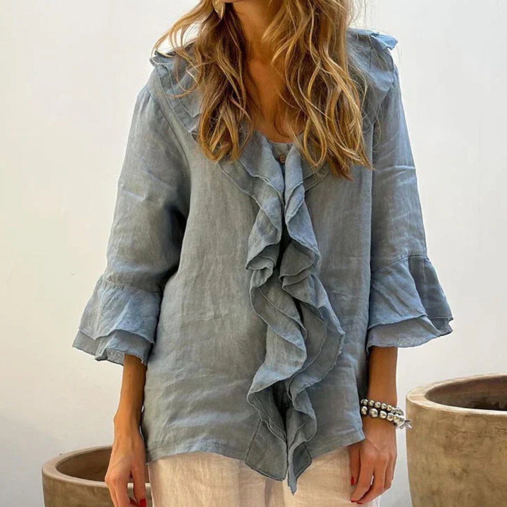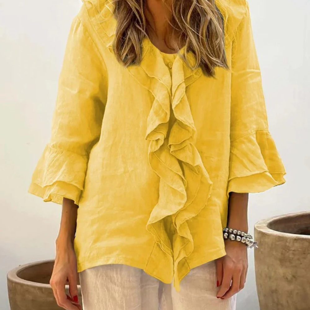 β Flattering Design: The ruffle detailing and 3/4 sleeves create a sophisticated, feminine silhouette that complements every body type.