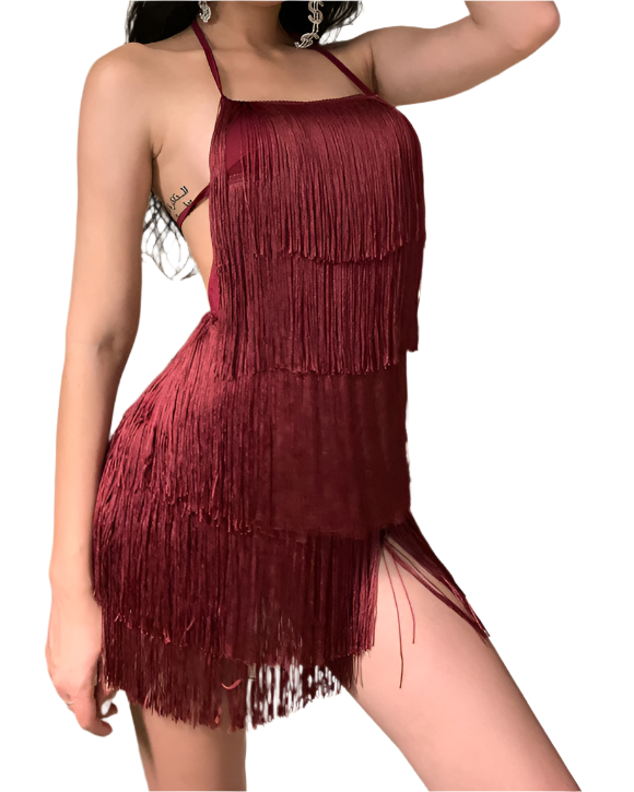 Unleash your inner goddess with the Althea Fringed Dress. This stunning dress features a bold halter neck design, complemented by elegant fringe details, making it perfect for your next special occasion. Whether you're dancing the night away or enjoying a chic evening out, the flattering backless design ensures all eyes are on you.