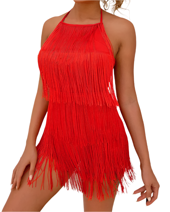 ✓ Elegant and Bold Design: The halter neck and fringed detailing elevate the dress, giving you an instant sophisticated yet daring look.