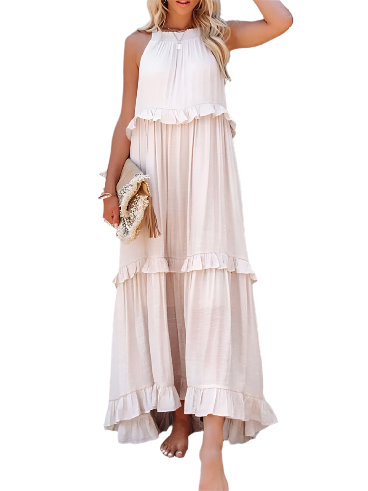 Step into effortless charm with the Anneliese backless frill dress. Its delicate frills and daring open-back detail create a stunning look that radiates sophistication and allure. Perfect for special evenings or sunny celebrations, this dress ensures you exude confidence with every step.