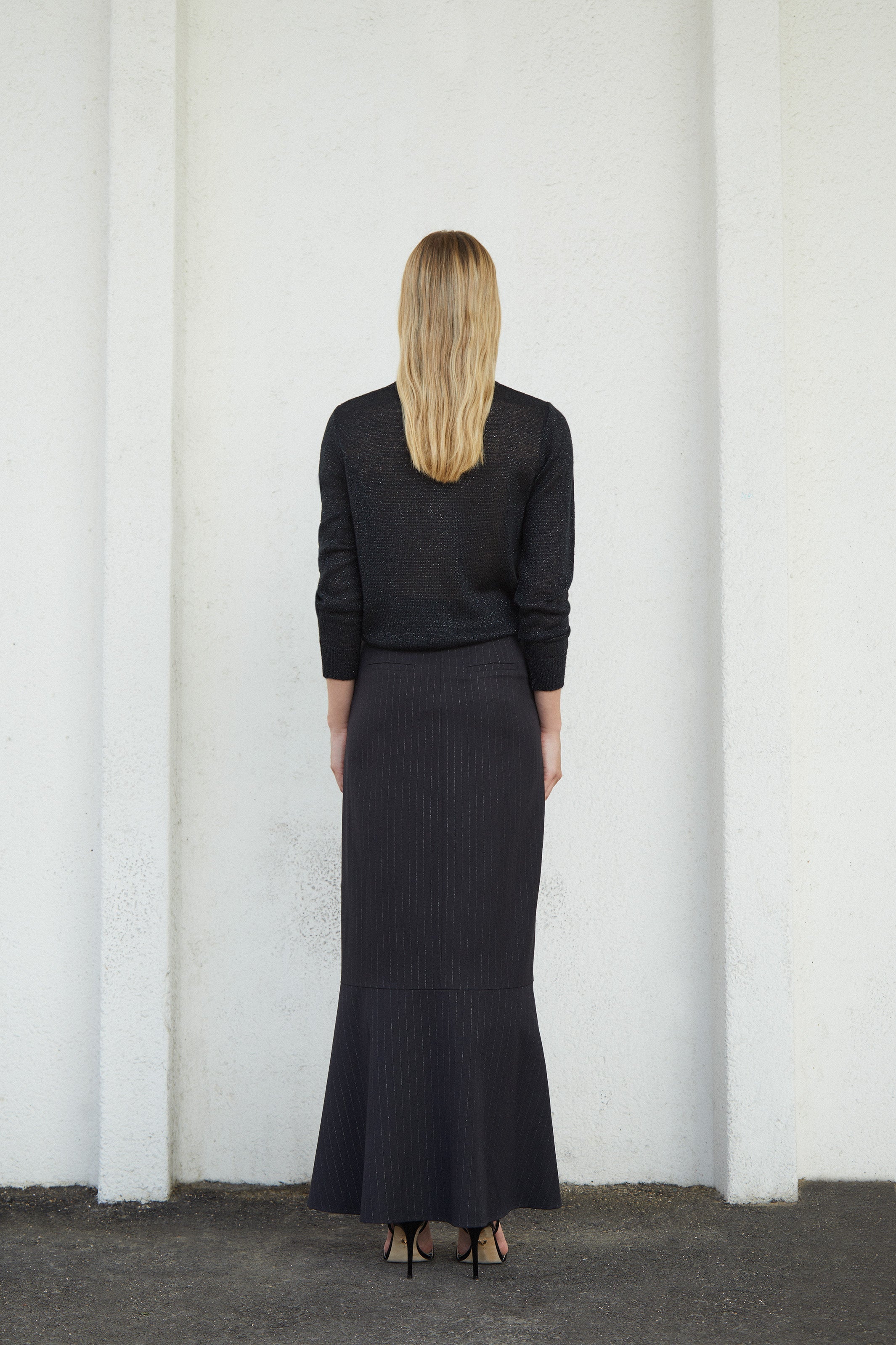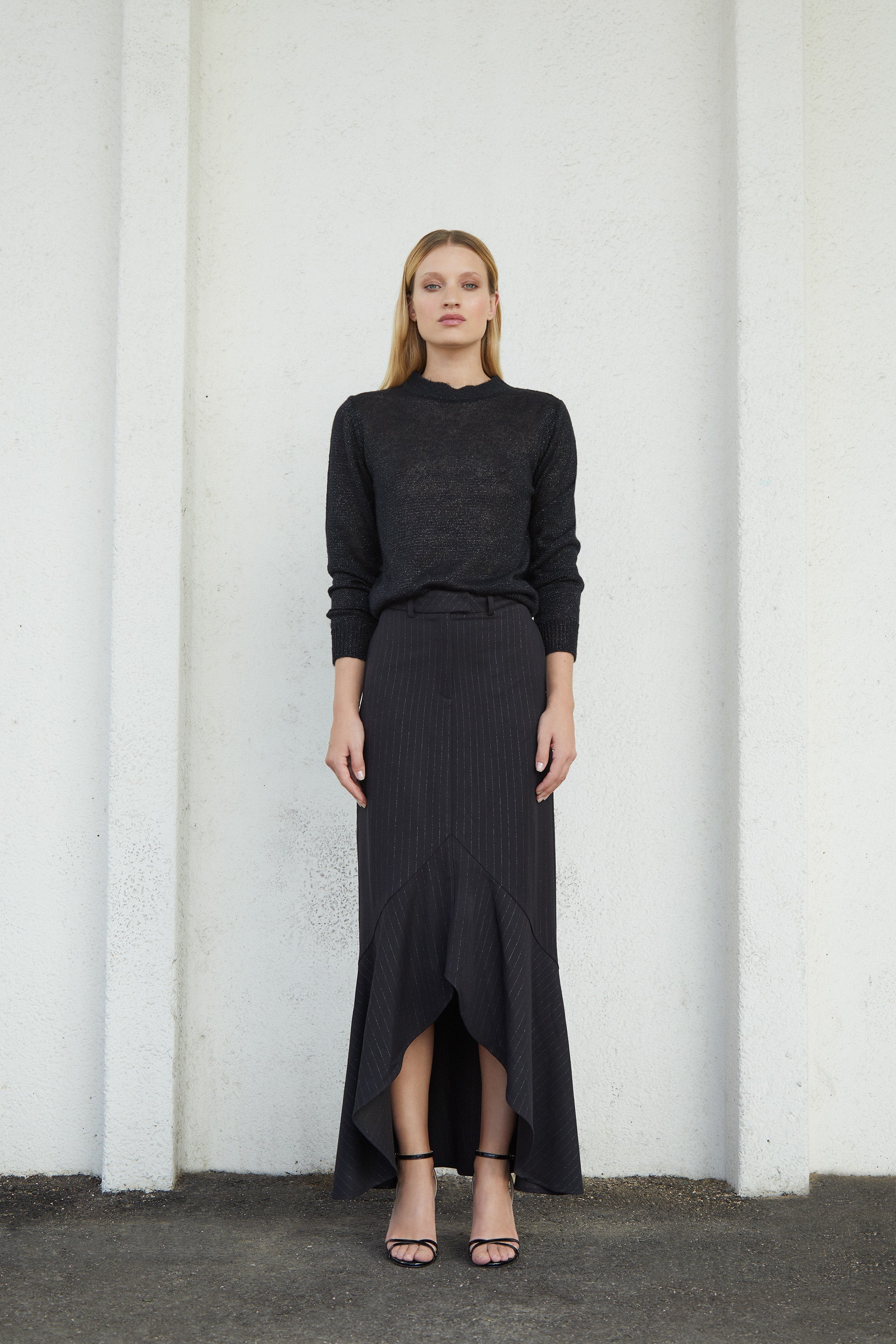 Feel the delicate shimmer of lurex threads as you slip into the sleek, modern design of the Ariana jumper sweater. This piece is more than just a sweater; it’s a versatile wardrobe essential that brings both comfort and sophistication to your everyday style. Its semi-open weave adds a light, contemporary touch, making it perfect for layering or wearing alone.
