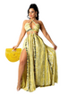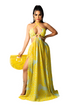 Slip into the essence of sunshine with the Aurelia, a halterneck dress that effortlessly combines vibrant yellow floral patterns with a flowing, breezy design. Its waist-cinching fit and daring slits make it your ultimate choice for carefree beach days or elegant evening gatherings.
