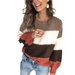 Introducing the Aurora Knitted Sweater—a chic and cozy piece that effortlessly combines modern design with timeless comfort. Perfect for cooler days, this sweater brings a vibrant touch to your wardrobe with its striking color block pattern.
