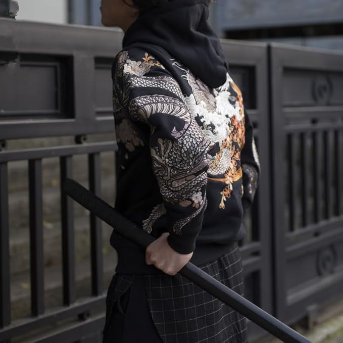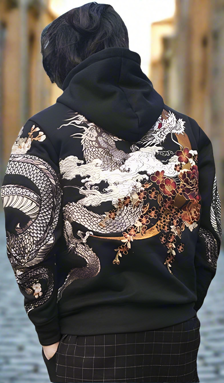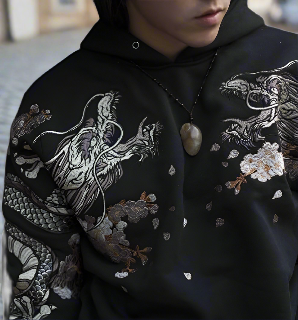 Embrace bold fashion with Calix hoodie. Whether you're showcasing the powerful Dragon King or the elegant crane design, Calix keeps you ahead of the trend. Ideal for those who appreciate a hoodie with a story, each embroidery speaks volumes about your personality.
