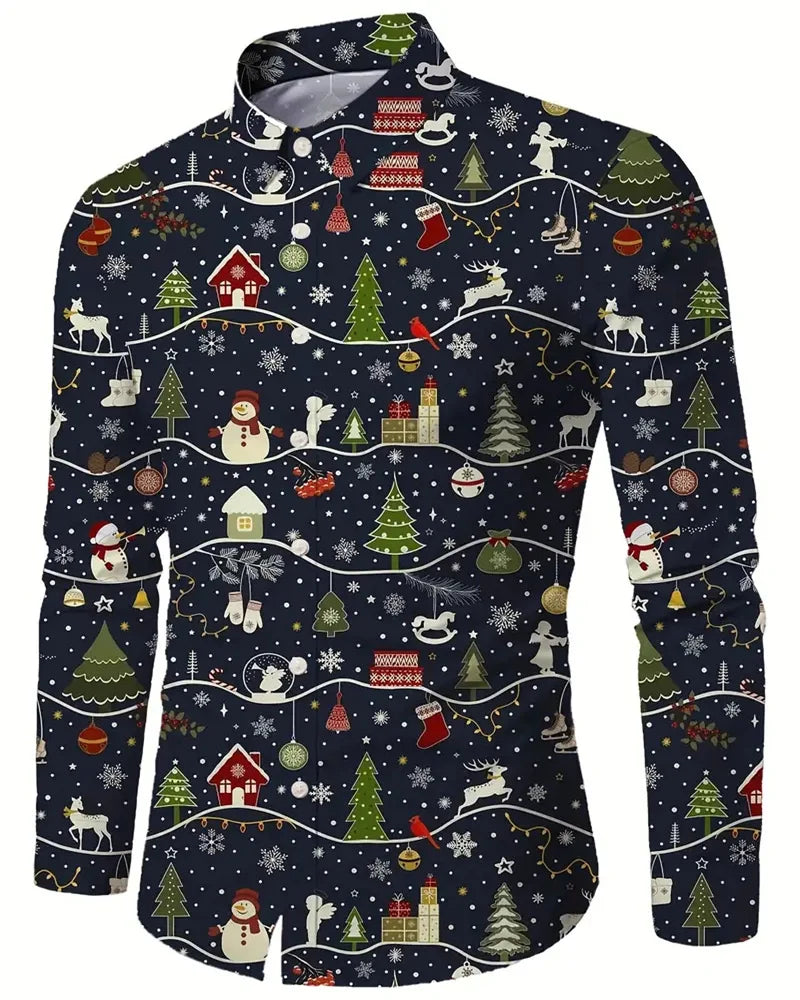 The Carlos shirt brings a fun and festive flair to your streetwear wardrobe. With its unique 3D print featuring a vibrant Christmas and New Year theme, this long sleeve shirt is the perfect way to add some holiday cheer to your everyday look. The button-down design offers a sleek, stylish appearance while the oversized fit (up to 6XL) ensures comfort without compromising on style.
