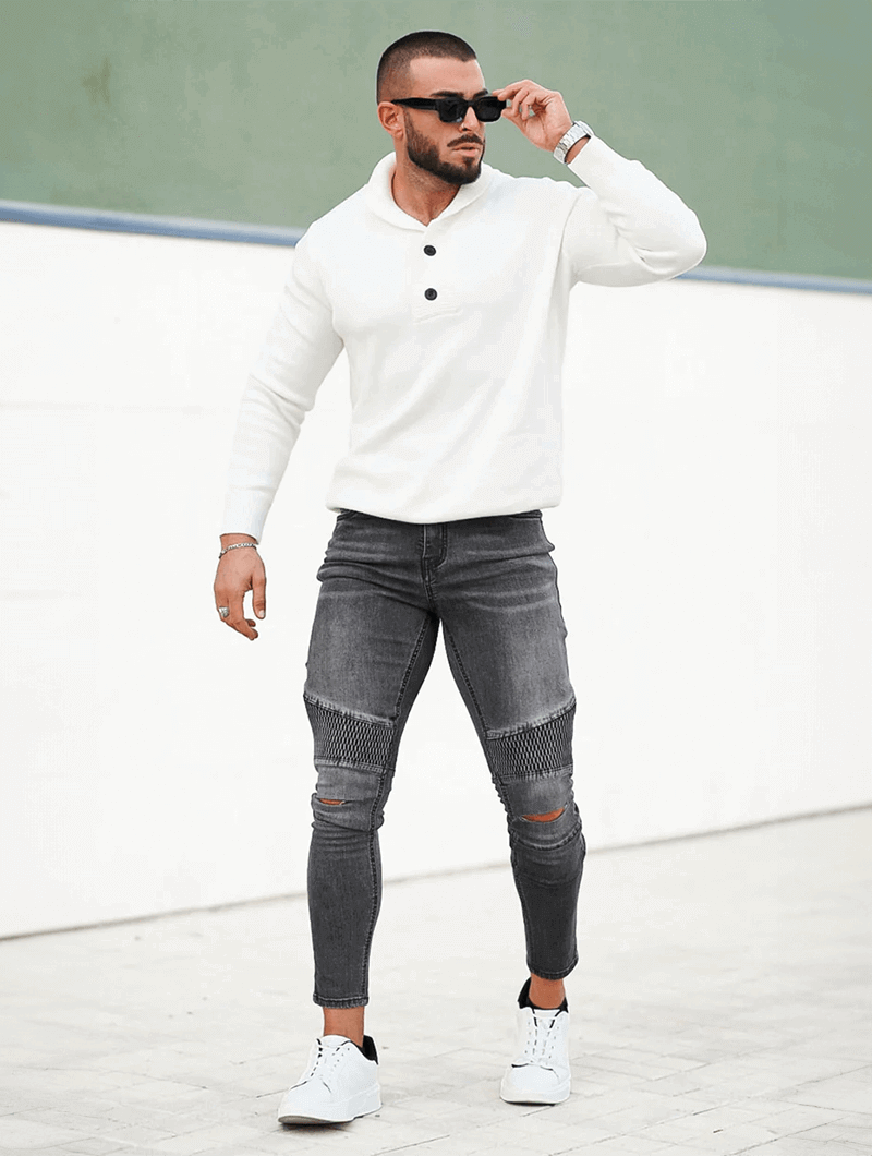 The Charles Riptide Denim Jeans are perfect for the modern man who wants to make a statement without sacrificing comfort. The gray wash and distressed details ensure you stand out while maintaining a classic, versatile style that complements any outfit. Whether dressing up or keeping it casual, these jeans will be your go-to choice.