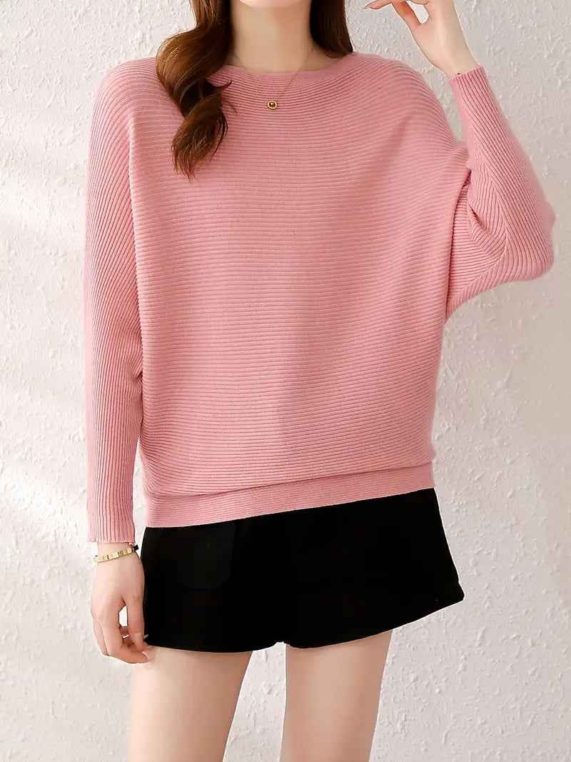 The unique batwing sleeves add a modern, flattering silhouette, while the timeless solid color offers versatility for countless outfit combinations. Whether paired with jeans or a skirt, this sweater is a staple that seamlessly fits into any wardrobe.