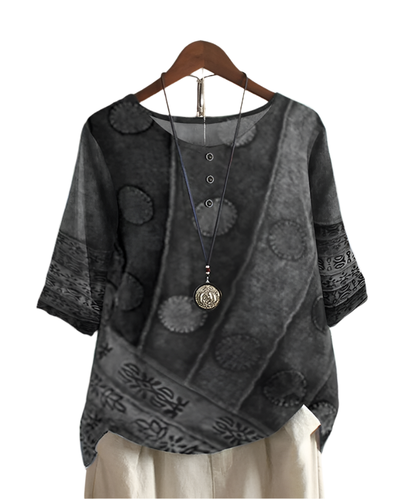 Elevate your wardrobe with the Clara Vintage Boho Top. This effortlessly chic top harmoniously blends casual comfort with sophisticated style, ensuring you feel great while looking your best. With its unique vintage digital print, it's the perfect solution for any fashion dilemma.