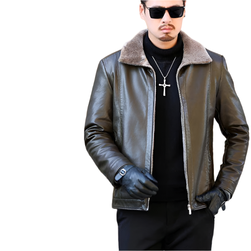 Step into the cold with confidence in the Gerald leather jacket. This men’s jacket combines sleek design and premium warmth, making it your go-to choice for staying stylish and cozy. Crafted from high-quality materials, it’s the perfect companion for winter days and nights.