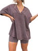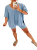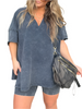 Experience effortless elegance paired with all-day comfort in this stylish two-piece ensemble. Picture yourself slipping into this vintage-washed outfit, feeling the soft fabric embrace your skin as you glide through your summer adventures. With its relaxed fit and fashionable V-neck design, this set is the perfect companion for every woman who values both style and practicality.