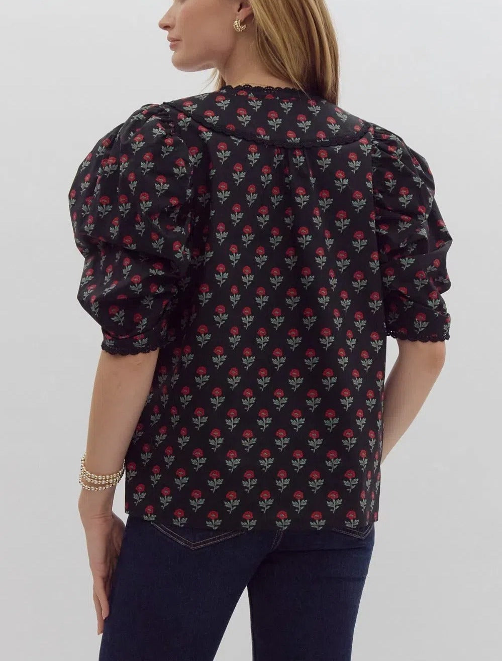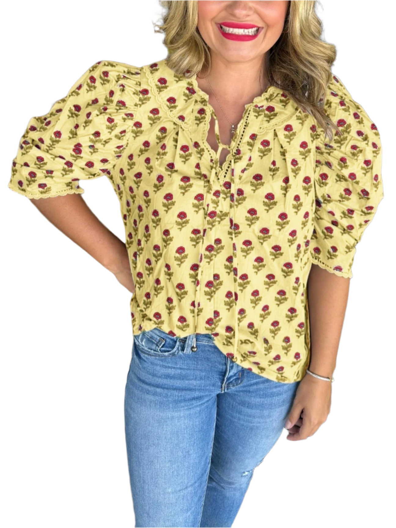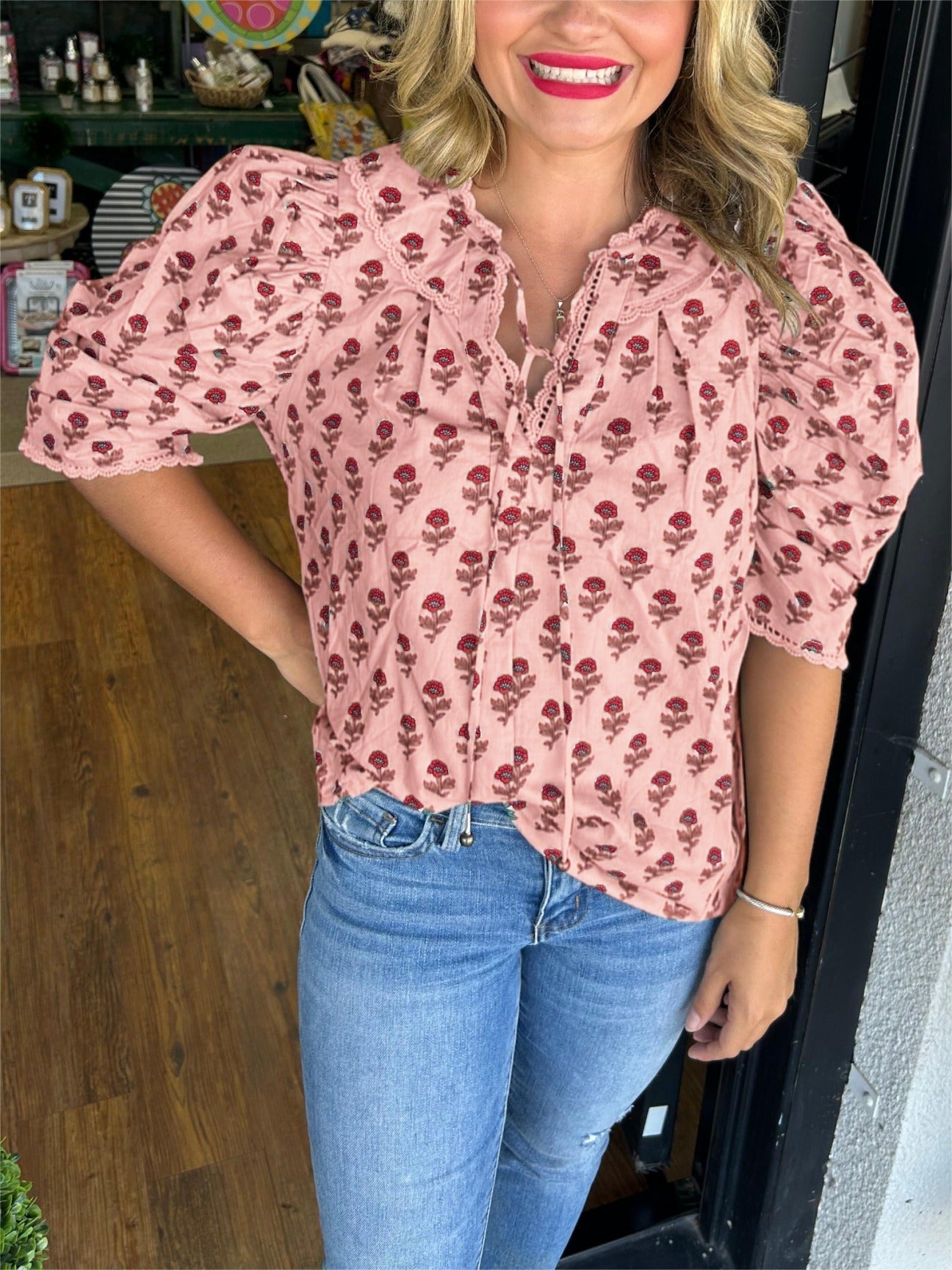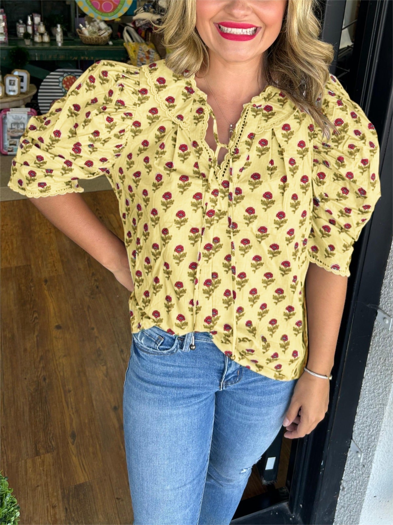 Bring out your inner beauty with this timeless floral blouse. Designed with a delicate floral pattern, it blends comfort and style, perfect for any occasion. Whether dressing up for a brunch or keeping it casual for a day out, the Hilda blouse is your go-to piece for refined elegance.