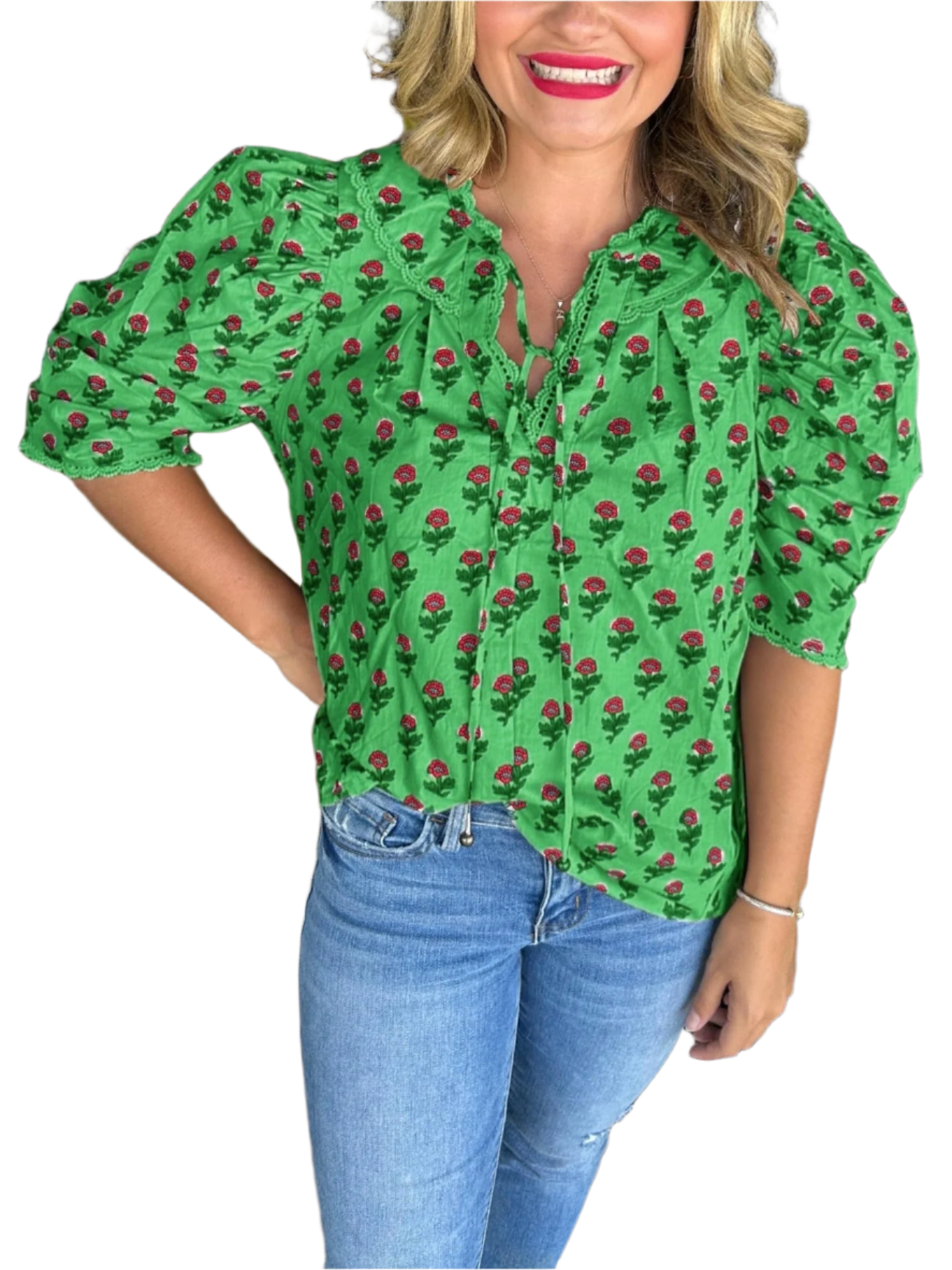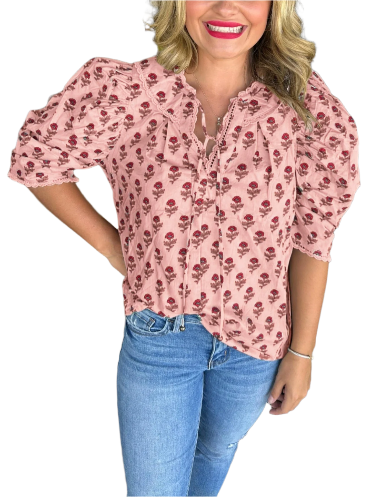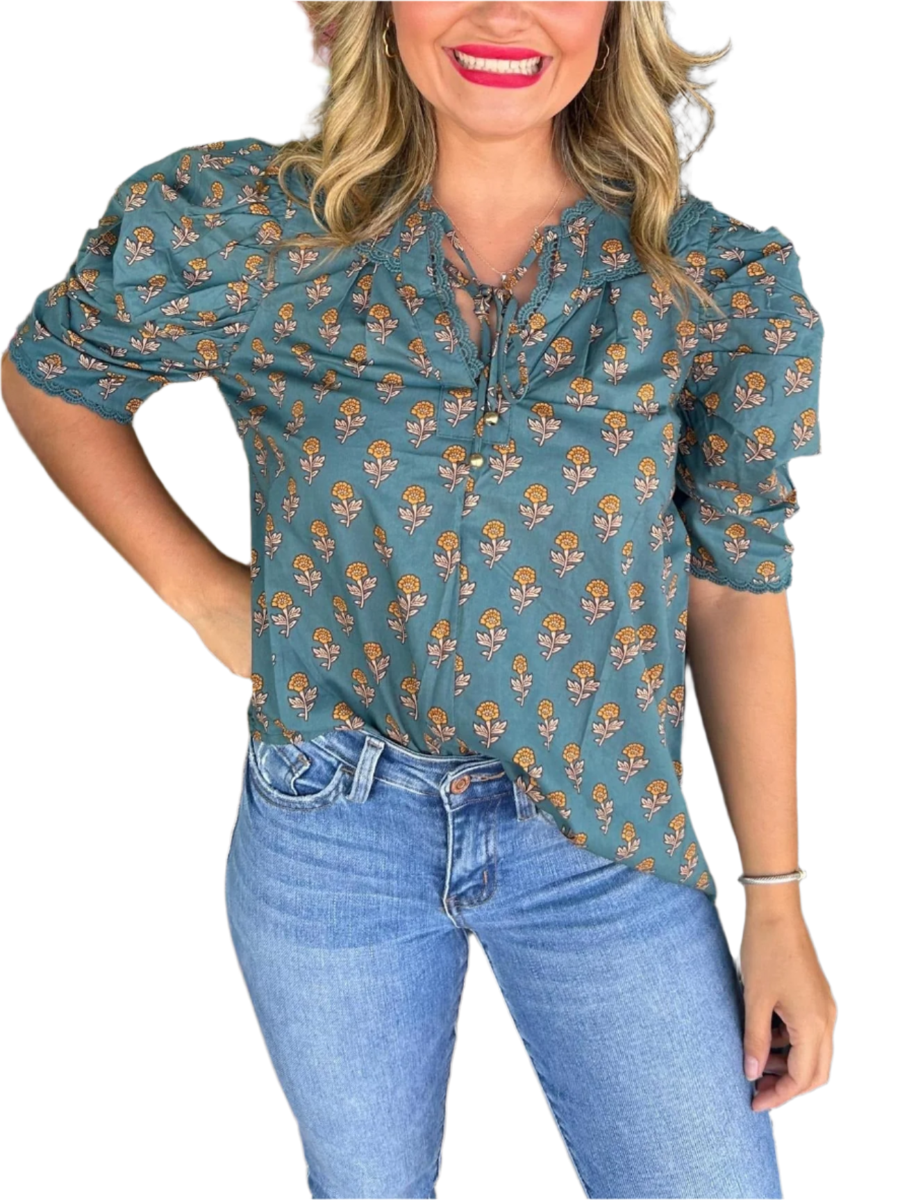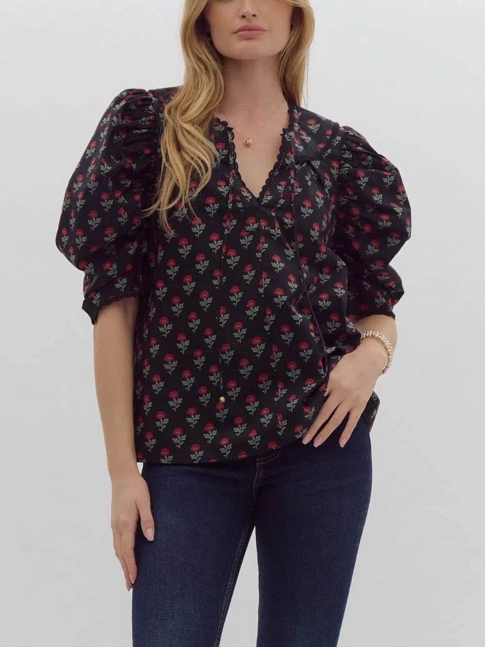 Bring out your inner beauty with this timeless floral blouse. Designed with a delicate floral pattern, it blends comfort and style, perfect for any occasion. Whether dressing up for a brunch or keeping it casual for a day out, the Hilda blouse is your go-to piece for refined elegance.