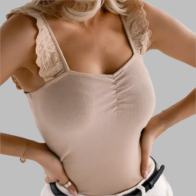 Elevate your style with Lina’s Square Neck Ruffled Sleeveless Camisole. This top is the perfect blend of fashion and comfort, making it an essential piece for the modern woman. Embrace the chic, open-back design and make a statement this season.